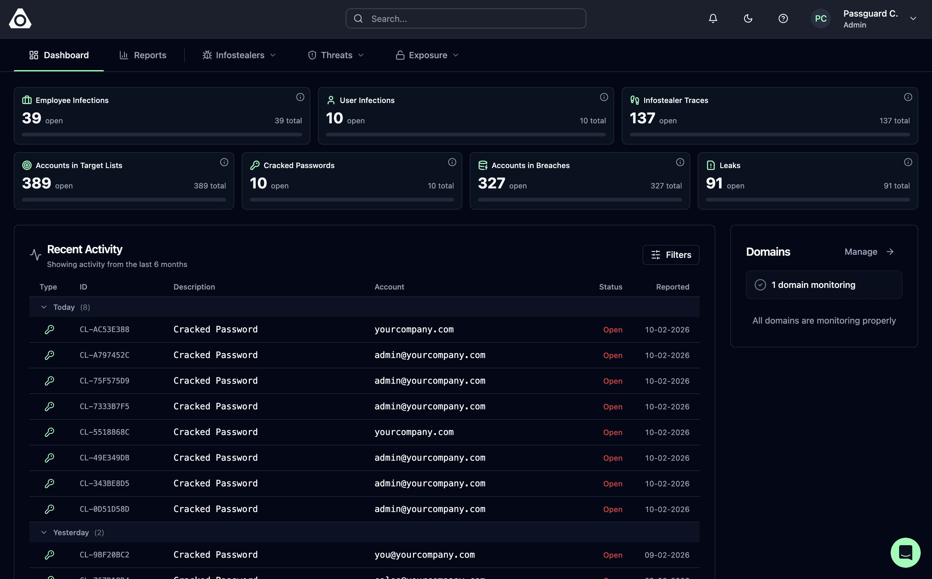 Stop being passive, become reactive. With Passguard you monitor your domain 24/7 helping you stay
